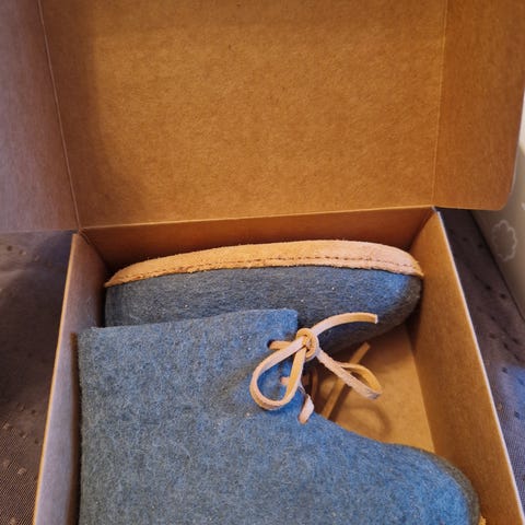 pent brukt tova babysko med ekstra lisser, passer til kalt vær, med ekstra lisser i rosa og blå.