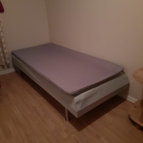 Sengen er lite brukt, men er en fjær som har oppet litt opp