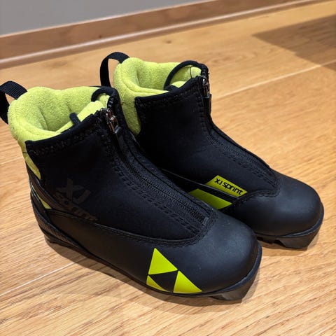 Fischer XJ Sprint langrennsstøvler for barn i størrelse EU 27. Støvlene har overdel i syntetisk materiale med glidelås foran og innvendig polstring i gul tekstil. Yttersålen er tilpasset NNN-bindinger (New Nordic Norm). Fargekombinasjon svart og gul. Egnet til klassisk langrenn for barn.
