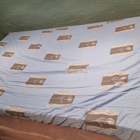 Tre enkle skumgummimadrasser fra 1980-tallet med kule retro trekk. Var brukt i sofabenker i en kjellerstue. Kanskje de ka brukes til utemøbler, en hytte, eller sofabenker?