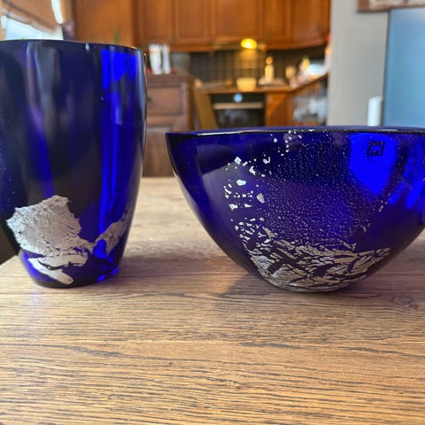 Vase og fat i serien «Aqua» fra Hadeland glassverk, av formgiver Maud Gjeruldsen Bugge.