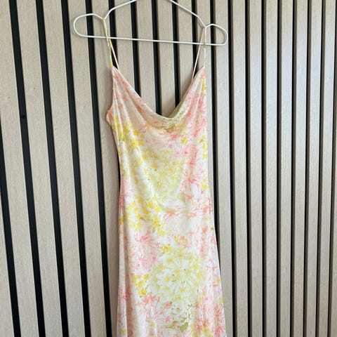 H&M sommerkjole for dame i størrelse XS. Kjolen er flerfarget med blomsterprint og har lange ermer.❤️ Den er laget i polyester og har v-utringning og lett plissért struktur i stoffet. Passer til bruk på varme dager, både til hverdags og enkle anledninger🥰