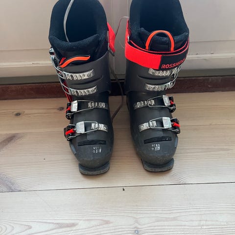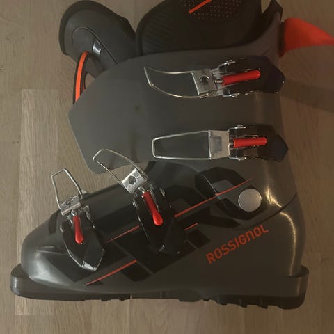 Rossignol alpinstøvler i grå med røde og svarte detaljer. Støvlene har fire justerbare spenner i metall og powerstrap øverst for bedre støtte rundt leggen. Sålen er laget for bruk i standard alpinbindinger. Passer til vanlig alpint bruk i bakke. Støvlene har polstret innersko for komfort og varme.