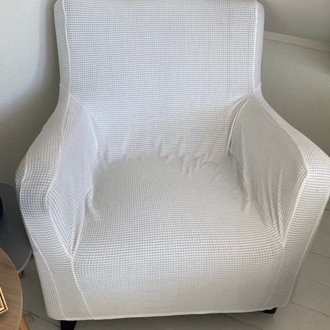 Lenestol fra Hjellegjerde i brunt mikrofiber stoff. Synlig brukt men ingen hull, rifter eller skader. I god stand.