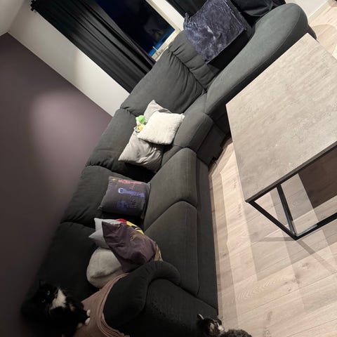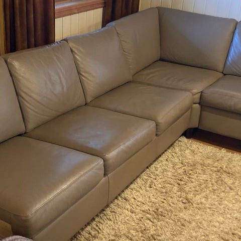 Hjørnesofa med sjeselong gis bort