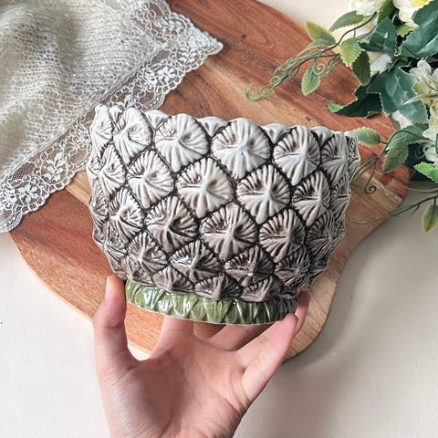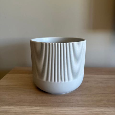 IKEA blomsterpotte i keramikk med rillet overflate. Potten har en matt, lys grønn farge og rund form. Egner seg til innendørs bruk til planter og blomster. Kan plasseres på gulv, bord eller vinduskarm avhengig av størrelse på plante og plassering i rommet. Den er Ø16cm og H16cm