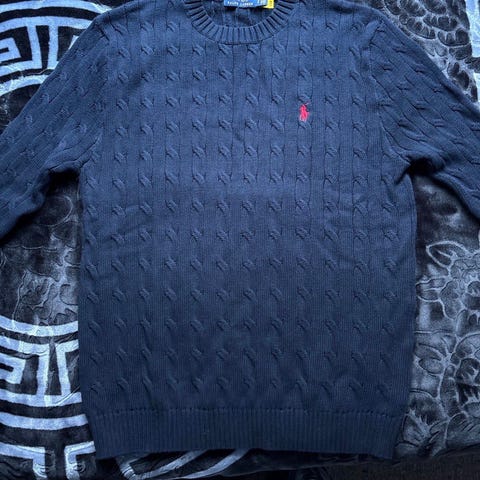🔹Ralph Lauren Polo genser for herre i størrelse S. Genseren er blå og laget av 100 % bomull. Klassisk rund hals og ribbestrikkede kanter i hals, ermer og nederkant. Diskret Polo-logo brodert på brystet. Passer til hverdagsbruk og kan kombineres med både jeans og chinos kan sendes med post og pris kan diskuteres🔹😁