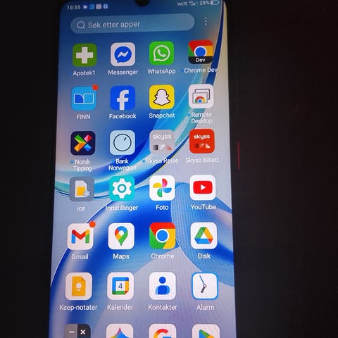 Skjermen er fri for sprekker. Samme med baksiden. Små bruksmerker rundt om selvsagt. Fungerer helt fint.
