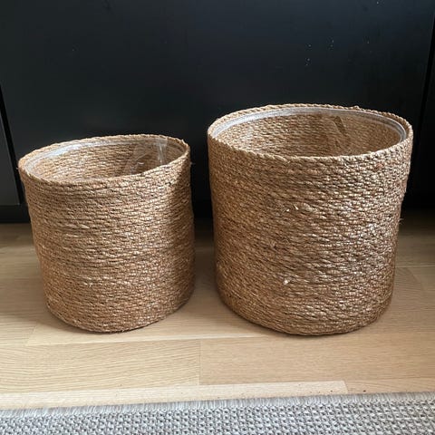 Kan brukes som kurver og potter! Selges da de ikke brukes her hjemme, samlet! H: 26 cm og 22 cm, Ø: 28cm og 23cm