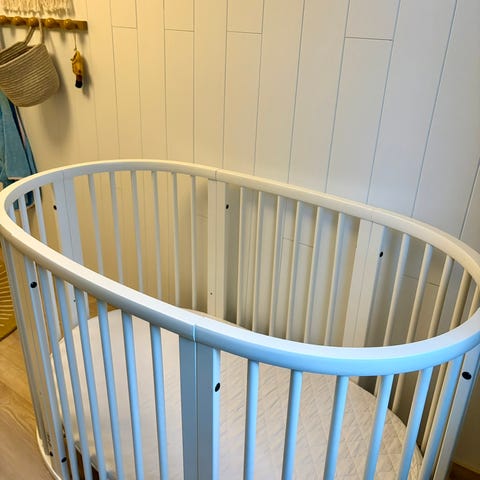 Selger vår Babybay bedside crib, som vi har brukt til to barn som ikke har villet ligge i den 😄 Men den har vært et praktisk nattbord til gulpeklutene, og fint og trygt med et stengsel på siden av sengen ved samsoving!