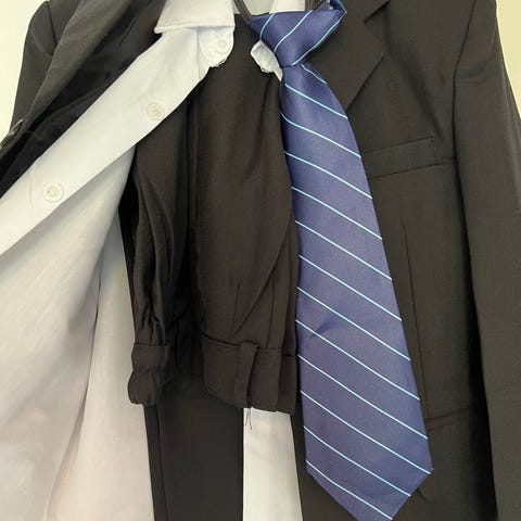Ravenclaw kostyme sett for jente cirka størrelse 140. Sett består av kappe med hette og Ravenclaw-emblem, stripet slips, stripet skjerf og plissert skjørt. Ble brukt med hvit skjorte under (følger IKKE med) Egnet som utkledning eller kostyme til barn. OBS! Skjørt er litt trang.