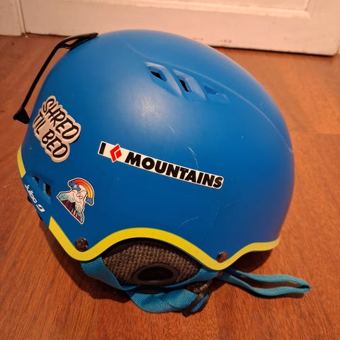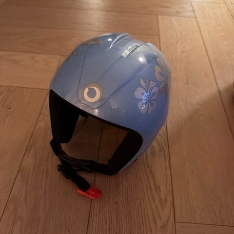Cebe barnehjelm i blå farge med fargerike motiver på sidene. Hjelmen har myk innvendig polstring og justerbar hakereim med klips. Bak på hjelmen er det en gul hempe, for eksempel til feste av brille- eller strikk. Flere ventilasjonsåpninger på toppen og baksiden gir lufting under bruk. Egnet som hjelm til barn, for eksempel til ski eller annen aktivitet der hodebeskyttelse er nødvendig.