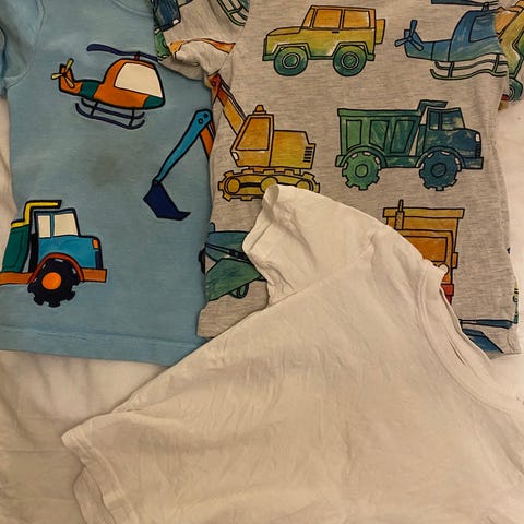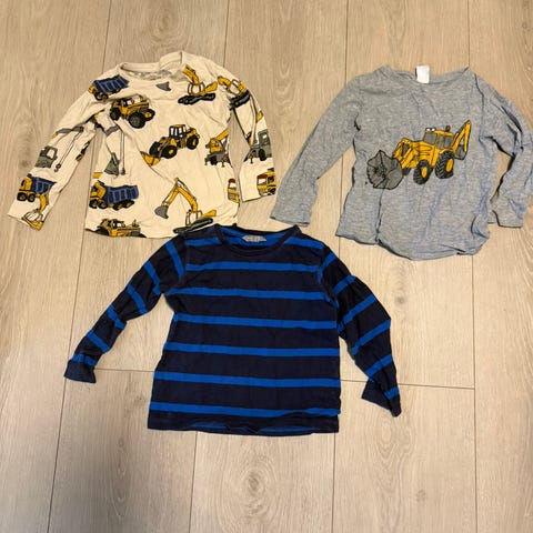 H&M genser med gravemaskin. Langermet topp i flerfarget design, blant annet med blå genser med gravemaskinmotiv.