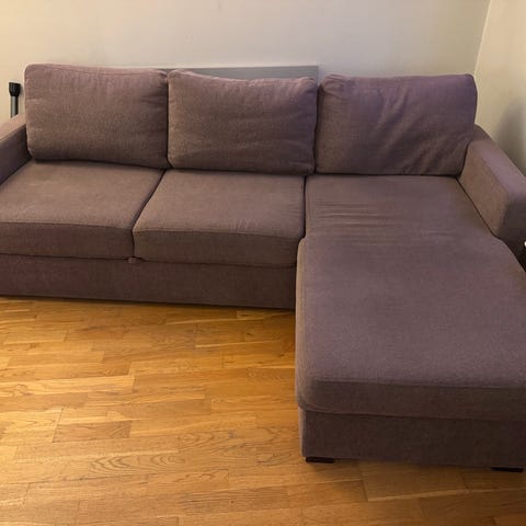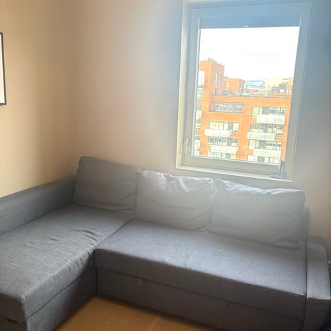Sovesofa gis bort. Funker som den skal. Senga blir ca 120cm når den er slått ut. Kan hentes på søndag etter kl 12.