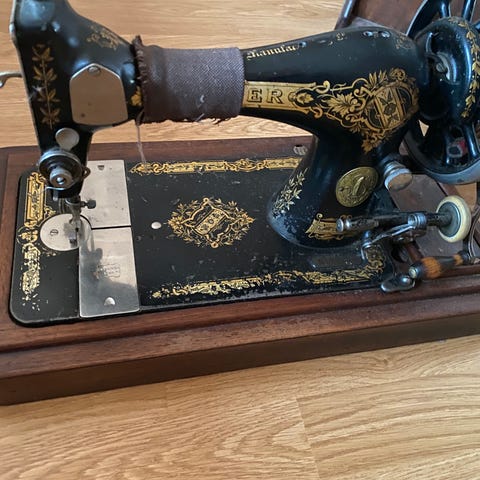 Antikk hånddrevet Singer symaskin fra ca. 1898–1899 — original og dekorativ