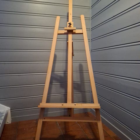Hvit staffeli egnet til bruk for maling, tegning eller utstilling av lerret og bilder.