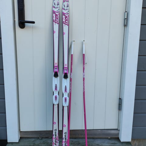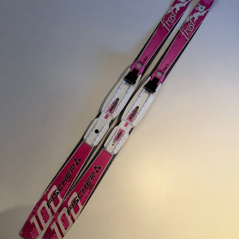 Fisher langrennski (100cm) med tilhørende langrennsstøvler og flere par staver (88cm) til barn. Støvlene er pent brukt str 31.