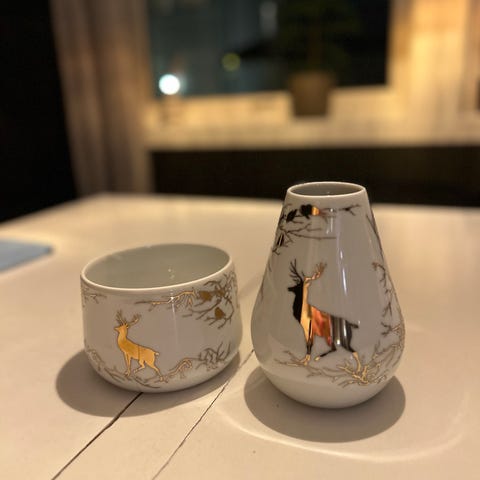 Skål med lokk og vase