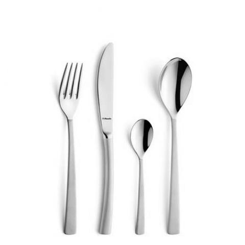 Eva Solo bestikk sett i rustfritt stål. Settet består av kniv, gaffel, spiseskje og teskje i et enkelt og tidløst design. Bestikket passer til daglig bruk ved spisebordet eller til servering ved ulike måltider. Leveres i eske som vist på bildene.