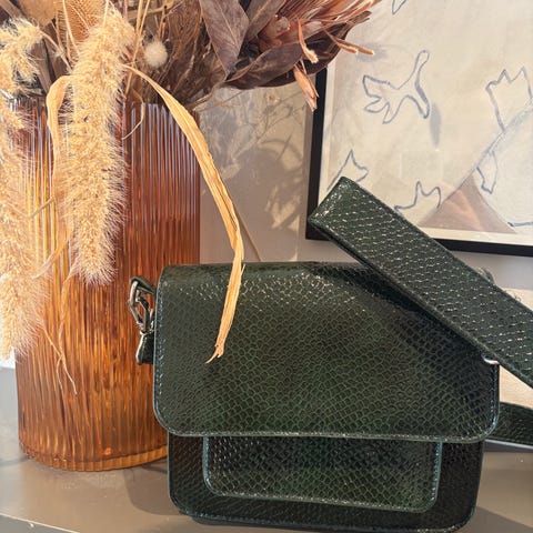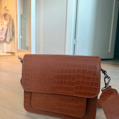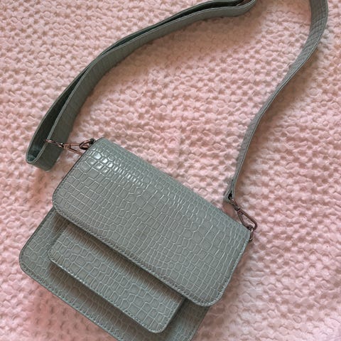 HVISK skulderveske i kunstlær for dame. Vesken har rektangulær form med klaffelukking og ytterlomme med klaff på forsiden. Justerbar og avtakbar skulderrem i samme materiale.