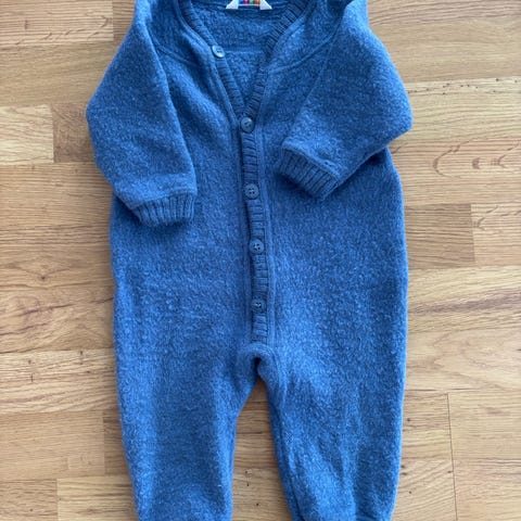 Selger et nydelig ullsett i mørk blå farge i str.56/62.Mykt, varmt og perfekt til høst og vinter.