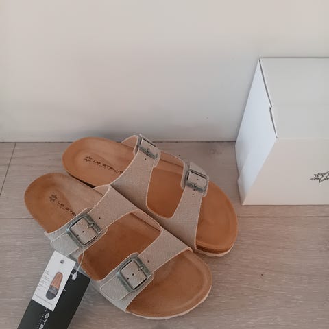 Selger helt nye sandaler i fargen lin.
