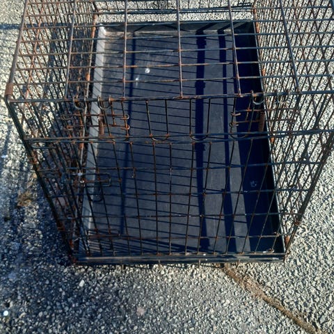 Godt brukt hundebur sammenleggbart i metall i svart farge. Buret har trådkonstruksjon med uttakbar bunn i plast. Buret kan slås sammen for lagring når det ikke er i bruk.