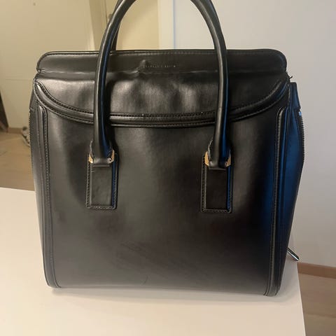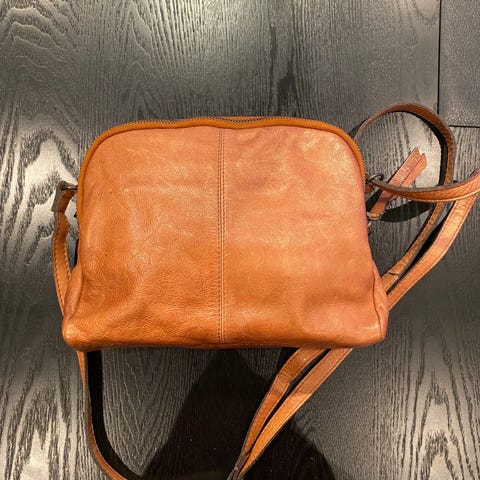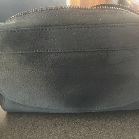Myk skinnveske med bølge mønster. Klaff og med en lomme på innsiden.