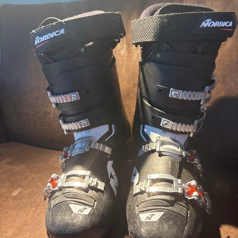 Nordica slalomstøvler str 27,5 tilsvarer ca 41, pent brukt, bare ca 4-5 ganger før de ble for små. Nesten ikke slitasjemerker.