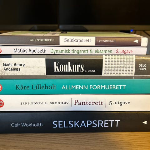 Pensum i jus3213 selges. Markeringer i konkursboken, ellers umarkerte bøker.