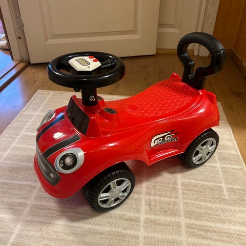 Fisher-Price lekebil med snor og puttekasse, lys og lyd. Noen bruksmerker.
