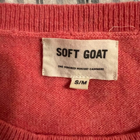 Soft Goat genser i kasjmir for dame i størrelse M. Fantastisk myk med kule detaljer. Passer fint til en S-M. Genseren er off white og ribbestrikket, med snøring og metallmaljer i halsen. Modellen har lange ermer og splitt i sidene nederst. Passer til hverdagsbruk og kan kombineres med både bukser og skjørt.