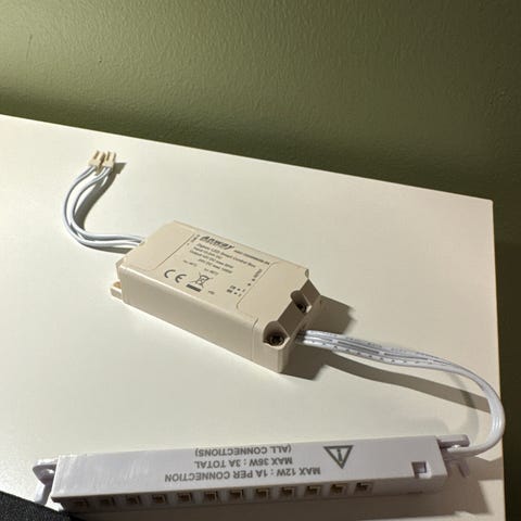 Flott belysning for garderober og lignende med elektronisk transformator . Den har trinnvis regulator.