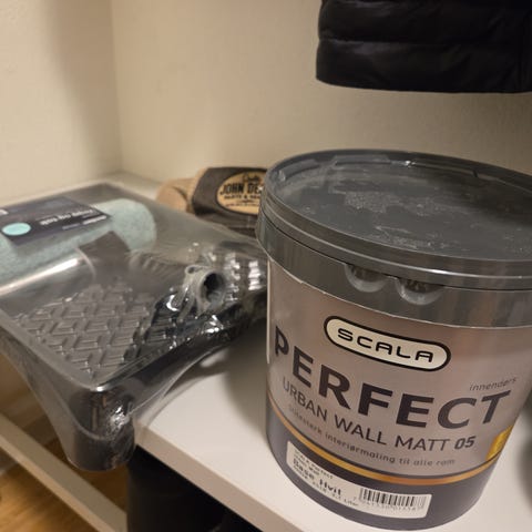 Selger et spann med Minerals Revive i fargen Green Leaf. Kjøpt på Obs Bygg i går. Har brukt noe av spannet til å teste ut på et lerret. Selges da fargen ble for lys og ikke passet inn hos oss.