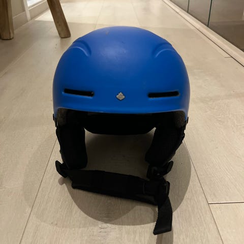 Sweet Protection Blaster skihjelm i størrelse M/L. Hjelmen er blå med sorte øreputer og blått hakereimssystem. Justeringssystem i nakken for tilpasning av passform. Ventilasjonsåpninger i front og topp for lufting. Mykt, polstret innvendig fôr med meshfelter for komfort. Egnet som skihjelm eller snowboardhjelm.