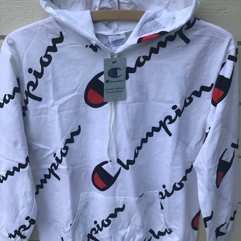 Champion Reverse Weave hettegenser for dame i størrelse L. Hettegenseren er lys grønn og laget hovedsakelig av bomull, med noe polyester i stoffblandingen. Modellen har hette med snøring, ribbestrikkede mansjetter og cropped passform med kort lengde.