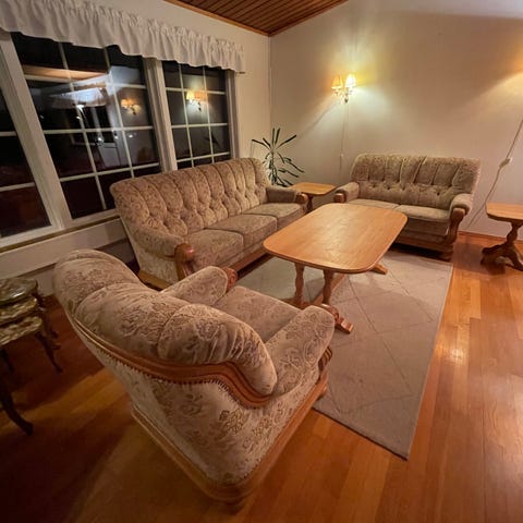 Sofa 3 seter 1,96cm lengde, 85 cm bred, sete dybde 50 cm, høyde rygg 80 cm.