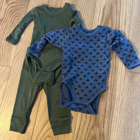 Bukse og vest i str 74 selges samlet for 30 kr. Pent brukt, ingen anmerkninger.