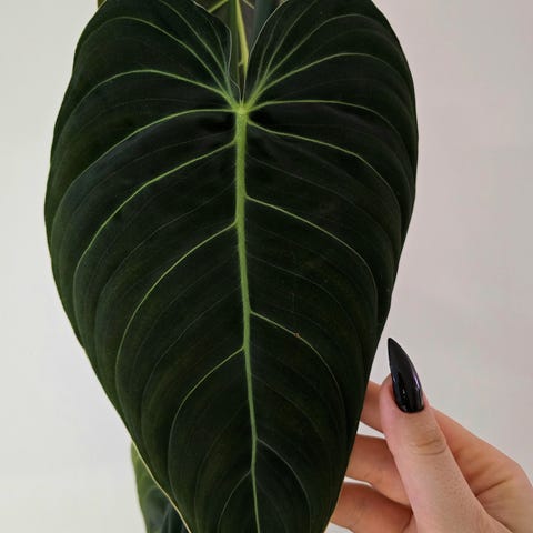 Philodendron scandens stueplante med grønne, hjerteformede blader. Planten er en klatrende variant som er festet til mosestokk for støtte. Egner seg som inneplante i stue, kontor eller andre oppholdsrom. Trives vanligvis i indirekte lys og med jevn vanning uten å stå i vann. Kan brukes både som klatreplante på støtte eller få henge fritt som slyngplante, avhengig av plassering og ønsket uttrykk.