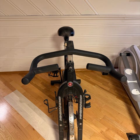 Setet kan justeres i høyden, og motstand stilles via dreiehjul.