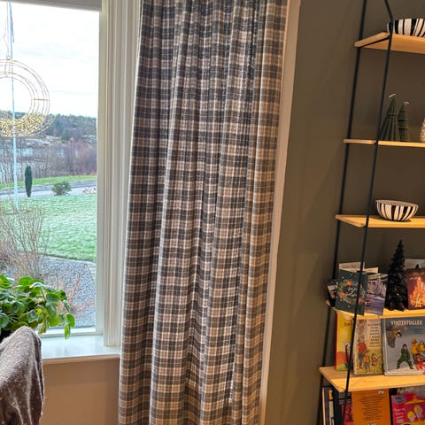 50 kr pr lengde. Har 8 lengder. Glade hjem gardiner i stripet mønster i beige og gråtoner. Gardinene har maljer/øyeringer øverst for enkel oppheng på gardinstang. Stoffet består av 85 % polyester og 15 % lin, som gir et lett og noe strukturert uttrykk. Passer til stue, soverom eller andre rom der man ønsker tekstiler som slipper inn noe lys samtidig som de skjermer for innsyn.