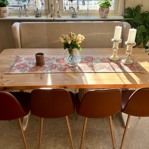 Solid spisebord i furu selges. Størrelse 90 x 200. Må ha med bærehjelp. Hentes Auli.