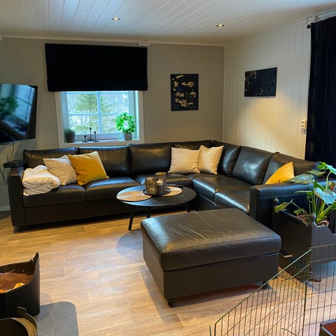 Pent brukt 5 seter skinnsofa fra IKEA