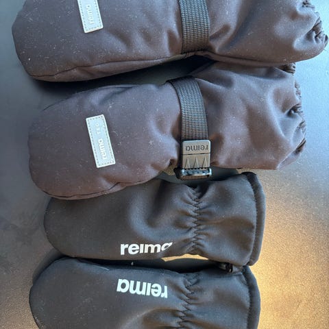 Reimatec+ votter med «fleece»for. Fin for vinter og vår. Det ene votteparet er 2 år og det andre er 3 år. Mener jeg betalte rundt 600,- samlet så dette er kupp!
