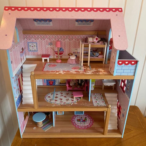 Dokkehus med mange møbler. Pent brukt i veldig god stand.