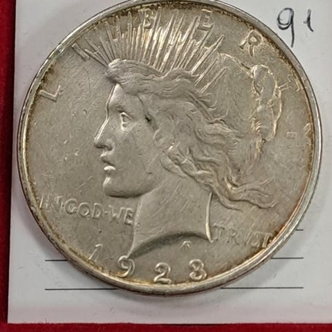 -Denne mynten, kjent som 1923 USA 1 dollar Peace Dollar fra Denver Mint, hadde en opprinnelig produksjon på omtrent 6 811 000. Gitt dens alder og historiske betydning, har mange blitt sirkulert eller smeltet ned gjennom tiårene. Imidlertid overlever en betydelig mengde, noe som gjør den relativt vanlig blant samlere, spesielt i sirkulerte grader.