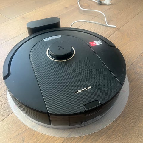 Roborock robotstøvsuger selges i svart farge, veldig god stand. Roboten har en hovedbørste, sidebørste og beholder for mopp/vann, noe som gjør at den kan brukes både til støvsuging og enkel våtrengjøring av harde gulv. Medfølgende ladestasjon med strømkabel og beskyttelsesmatte for gulv under laderen (se bilde). Passer til rengjøring av harde gulv og tepper i hjemmemiljø. Svært lite brukt. Kjøpt hos Elkjøp.