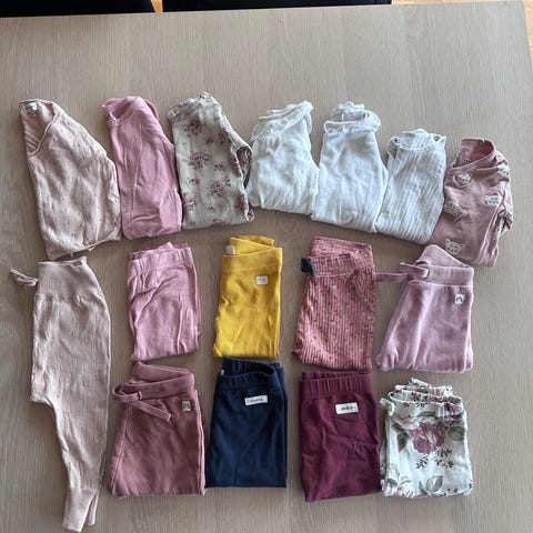 3 ullsett. Det fra Joha har slitasje og anmerkninger . De andre er fint brukt. 1 fleecesett i 134/140, kan brukes fra 128 syns jeg. En fleecegenser. + en fleece bukse fra Skogstad. + en turbukse fra gullkorn i 128