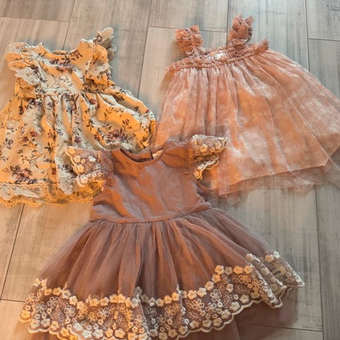 Selger en helt skjønn kjole fra The New i størrelse 68. Kjolen er i en vakker kremfarge med delikate broderte blomsterdetaljer som gjør den ekstra spesiell.