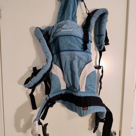Ergobaby Embrace bæreselle i fargen Oxford Blue. Modellen er en myk og kompakt bæreselle beregnet for bæring av baby. Selen har polstrede skulderstropper og midjebelte med spenne for jevn vektfordeling. Justerbare stropper gjør at den kan tilpasses ulike brukere. Leveres med bruksanvisning som viser forskjellige bærestillinger og justeringer. Brukt til ett barn.